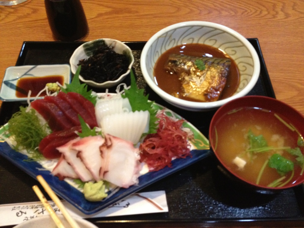 23時過ぎ 熱海の定食屋に行く サバの味噌煮うめぇぇぇぇ!刺身は…まぁまぁやな